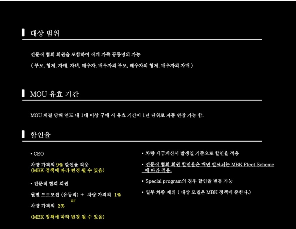 ✔️대한여성치과의사회는 벤츠코리아와 업무협약체결을 맺고 차량 구매시 차량가격의 3% 할인 혜택을 받게 되었다.