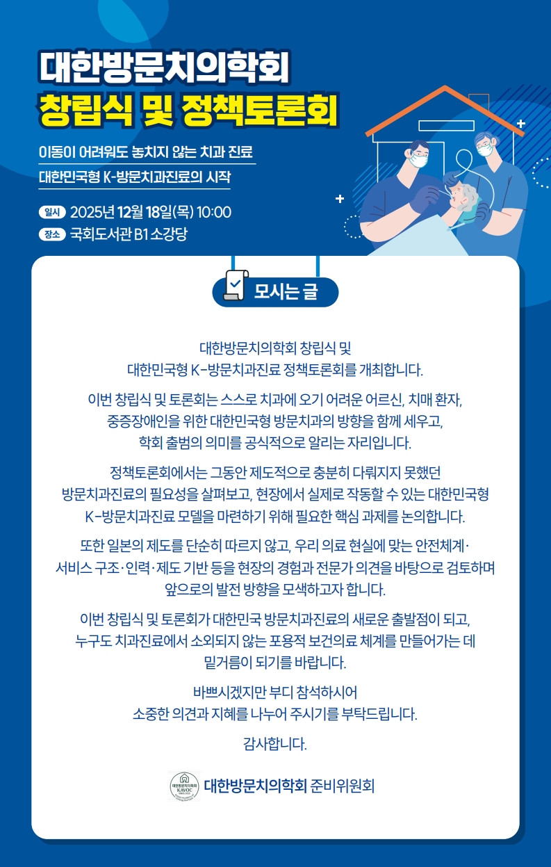 국회 방문치의학회 창립 총회 토론회 페이지 정보 작성자 백희숙쪽지보내기 메일보내기 홈페이지 자기소개 아이디로 검색 전체게시물쪽지보내기 메일보내기 홈페이지 자기소개 아이디로 검색 전체게시물 댓글 0건 조회 59회 작성일25-12-18 16:44 본문 국회 방문치의학회 창립 총회 토론회 참석: 장소희, 송연희, 박선아, 황지영, 김모란, 신은섭 고문님 댓글목록 목록 Total 689건 1 페이지 본회 활동 목록 번호 제목 글쓴이 날짜 대한 여성치과의사회 연회비의 DV포인트 적립 안내 김현정쪽지보내기 메일보내기 홈페이지 자기소개 아이디로 검색 전체게시물쪽지보내기 메일보내기 홈페이지 자기소개 아이디로 검색 전체게시물 957 08-09 688 한국여성변호사회 제36차 정기총회 및 신년회 백희숙쪽지보내기 메일보내기 홈페이지 자기소개 아이디로 검색 전체게시물쪽지보내기 메일보내기 홈페이지 자기소개 아이디로 검색 전체게시물 12 01-14 687 전현희의원 직능 사회분야 대표간담회 백희숙쪽지보내기 메일보내기 홈페이지 자기소개 아이디로 검색 전체게시물쪽지보내기 메일보내기 홈페이지 자기소개 아이디로 검색 전체게시물 11 01-14 686 제75회 과학기술 여성리더스포럼과 여성과총 회장 이취임식 백희숙쪽지보내기 메일보내기 홈페이지 자기소개 아이디로 검색 전체게시물쪽지보내기 메일보내기 홈페이지 자기소개 아이디로 검색 전체게시물 76 12-19 685 성프란치스꼬 장애인종합복지관에 기부금 전달 백희숙쪽지보내기 메일보내기 홈페이지 자기소개 아이디로 검색 전체게시물쪽지보내기 메일보내기 홈페이지 자기소개 아이디로 검색 전체게시물 71 12-19 684 한국여성단체협의회 66주년 창립기념식. 백희숙쪽지보내기 메일보내기 홈페이지 자기소개 아이디로 검색 전체게시물쪽지보내기 메일보내기 홈페이지 자기소개 아이디로 검색 전체게시물 53 12-19 열람중 국회 방문치의학회 창립 총회 토론회 백희숙쪽지보내기 메일보내기 홈페이지 자기소개 아이디로 검색 전체게시물쪽지보내기 메일보내기 홈페이지 자기소개 아이디로 검색 전체게시물 60 12-18 682 인천시여성치과의사회 송년회 백희숙쪽지보내기 메일보내기 홈페이지 자기소개 아이디로 검색 전체게시물쪽지보내기 메일보내기 홈페이지 자기소개 아이디로 검색 전체게시물 59 12-18 681 오스템임플란트 송년의 밤 백희숙쪽지보내기 메일보내기 홈페이지 자기소개 아이디로 검색 전체게시물쪽지보내기 메일보내기 홈페이지 자기소개 아이디로 검색 전체게시물 78 12-15 680 강원지부 춘천분회 송년회 참석 백희숙쪽지보내기 메일보내기 홈페이지 자기소개 아이디로 검색 전체게시물쪽지보내기 메일보내기 홈페이지 자기소개 아이디로 검색 전체게시물 81 12-12 679 풀뿌리간담회 준비모임 백희숙쪽지보내기 메일보내기 홈페이지 자기소개 아이디로 검색 전체게시물쪽지보내기 메일보내기 홈페이지 자기소개 아이디로 검색 전체게시물 80 12-10 678 제5회 김우중 의료인상 시상식 참가 및 의료봉사상 수상 백희숙쪽지보내기 메일보내기 홈페이지 자기소개 아이디로 검색 전체게시물쪽지보내기 메일보내기 홈페이지 자기소개 아이디로 검색 전체게시물 97 12-10 677 서여치 2025 송년회 밤 참석 백희숙쪽지보내기 메일보내기 홈페이지 자기소개 아이디로 검색 전체게시물쪽지보내기 메일보내기 홈페이지 자기소개 아이디로 검색 전체게시물 108 12-08 676 한국양성평등교육진흥원, 대한여성치과의사회와 업무협약(MOU) 체결 백희숙쪽지보내기 메일보내기 홈페이지 자기소개 아이디로 검색 전체게시물쪽지보내기 메일보내기 홈페이지 자기소개 아이디로 검색 전체게시물 114 12-05 675 스마일재단에 스마일 RUN 페스티벌 수익금 기부 백희숙쪽지보내기 메일보내기 홈페이지 자기소개 아이디로 검색 전체게시물쪽지보내기 메일보내기 홈페이지 자기소개 아이디로 검색 전체게시물 98 12-03 열린1페이지 2페이지 3페이지 4페이지 5페이지 6페이지 7페이지 8페이지 9페이지 10페이지 다음 맨끝 검색대상 제목 내용 제목+내용 회원아이디 회원아이디(코) 글쓴이 글쓴이(코) 검색어 필수 검색